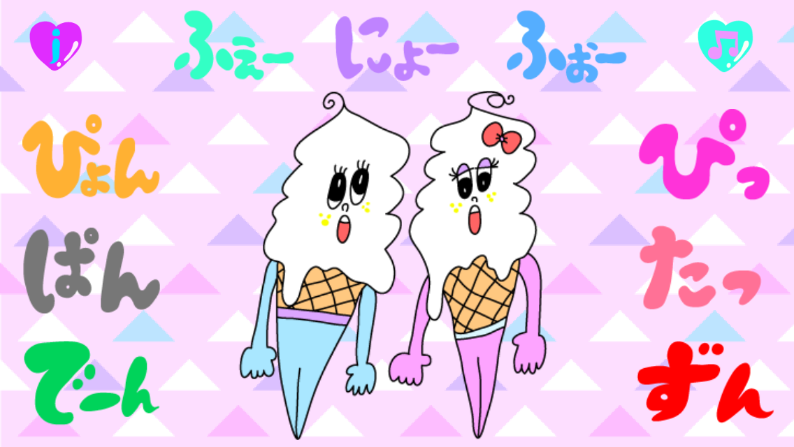 音楽に合わせて文字ボタンを叩くと、アイスクリームが踊りだすよ!