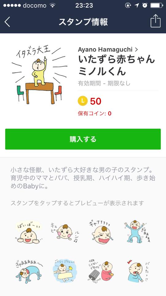 LINEスタンプ『いたずら赤ちゃんミノルくん』が発売しました!
